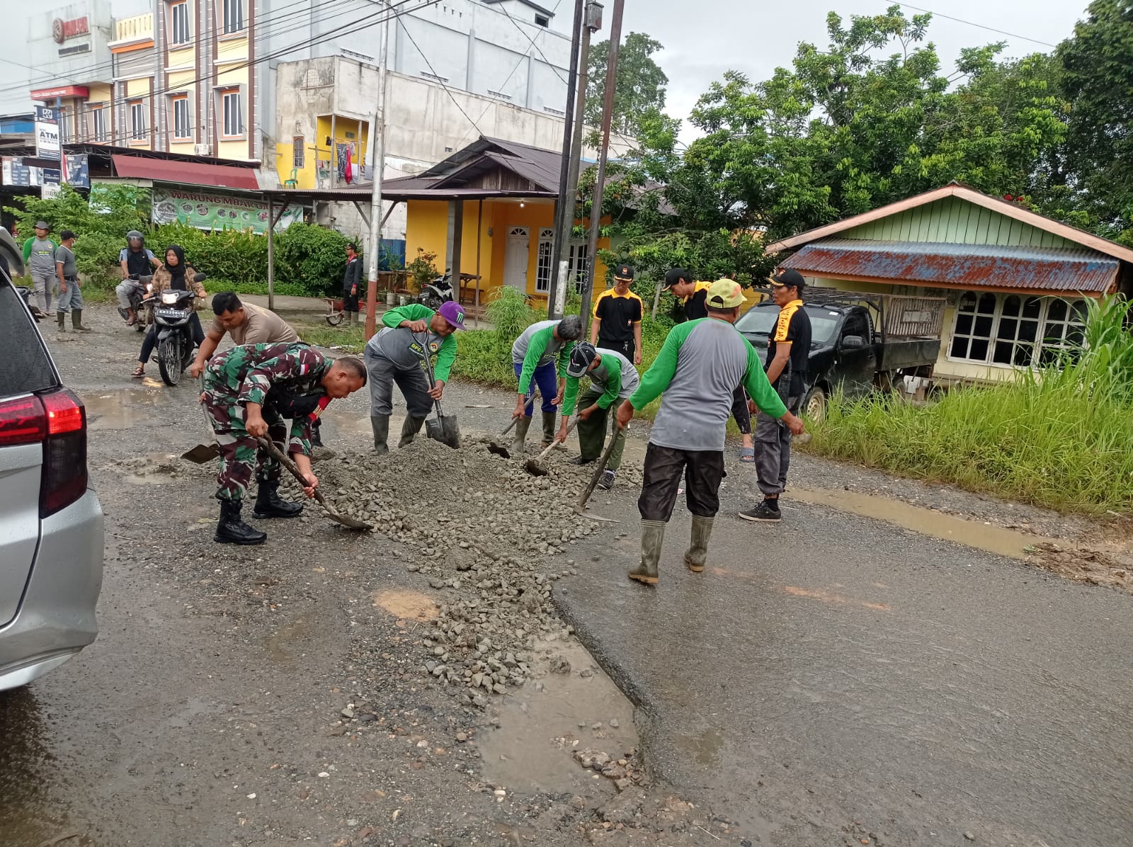 Kerja Bakti Pembenahan jalan yang Berlubang di Jalan Temanggung Gergaji Dusun Balai 2 Desa Balai Karangan Kec. Sekayam, kondisi ini mendorong warga masyarakat untuk bekerja bakti bersama dengan Babinsa dengan melaksanakan perbaikan agar kondisi jalan dapat dilalui warga dengan mudah dan nyaman.