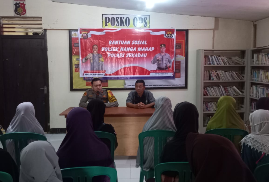 Pembagian bansos kepada masyarakat yang bertempat di mako aula Mapolsek Nanga Mahap di hadiri oleh kepala Desa Nanga Mahap Suherman Sampun,Kanit bimas Polsek Nanga Mahap Bripka Lorensius Fransiskus dan beberapa tokoh masyarakat.