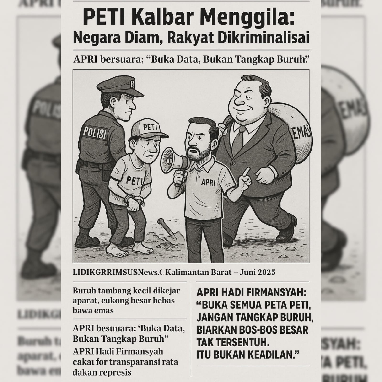 Gelombang Pertambangan Tanpa Izin (PETI) di Kalimantan Barat bukan lagi sekadar fenomena. Ia telah menjelma menjadi krisis sistemik yang tak terbendung. Dari hutan pedalaman hingga pinggiran kota, guratan ekskavator dan lubang-lubang tambang menyebar dengan pola terstruktur, sistematis, dan masif (TSM).