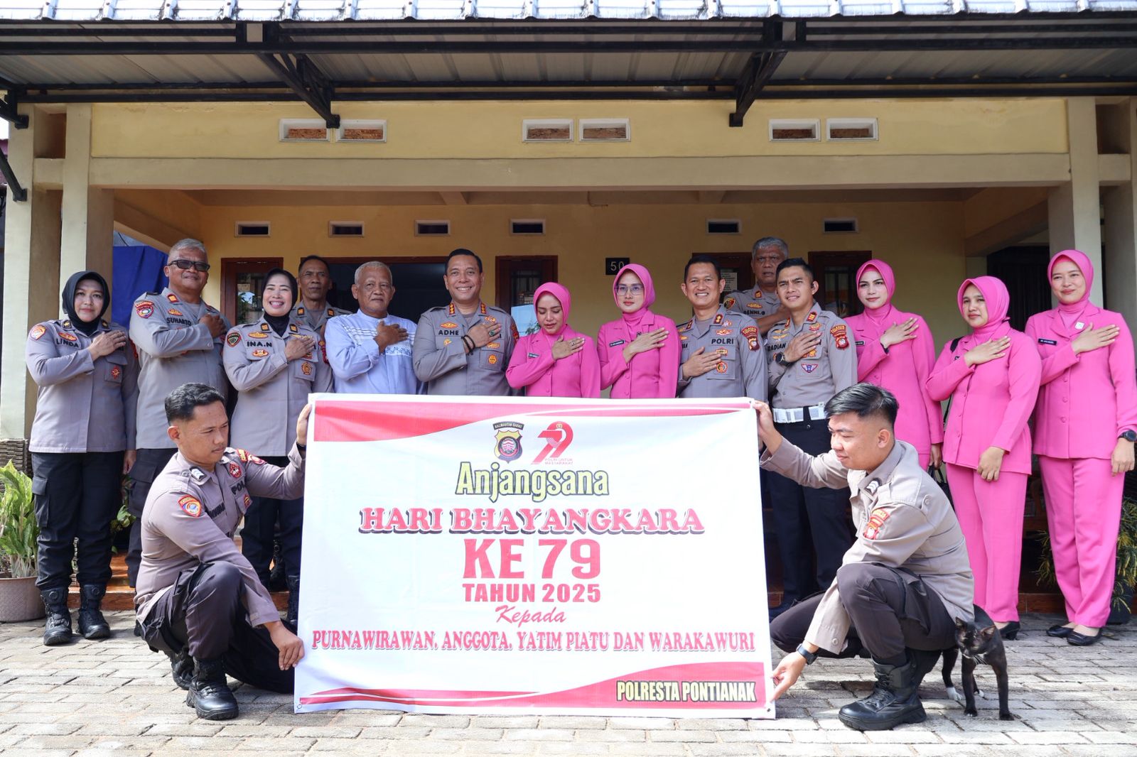 Dalam rangka memperingati Hari Bhayangkara ke-79,Kepolisian Resor Kota (Polresta) Pontianak menggelar kegiatan anjangsana sebagai bentuk penghargaan dan kepedulian kepada para purnawirawan Polri,personel yang sedang sakit, serta Warakawuri (istri almarhum anggota Polri) yangbdilaksanakan pada hari Selasa (17/06/2025)
