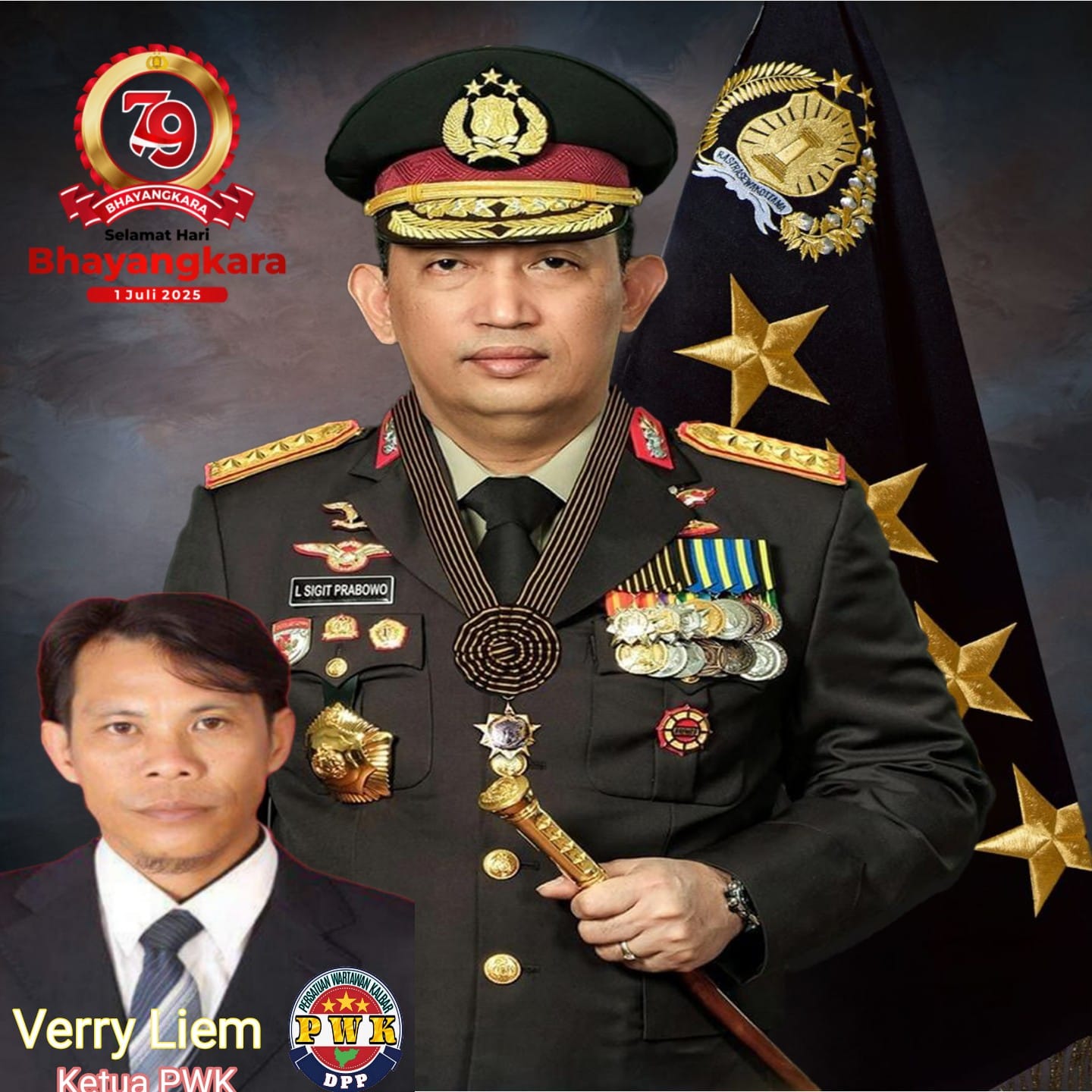 “Selamat HUT Bhayangkara yang ke-79, semoga di usianya yang sudah lebih dari seperempat abad ini, Polri lebih baik, sesuai dengan tema yang diusung, Polri untuk Rakyat. Polri semakin dekat dengan Rakyat, mengayomi, Responsibility nya makin dirasakan bukan sekedar slogan semata, “ucap Ketua PWK yang akrab disapa Verry Liem.