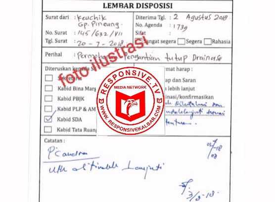 Soal dugaan disposisi ini, media sempat melihat salah satu dokumen minat dari perusahaan tergeletak dimejanya. Surat minat ini sepertinya belum disposisi ke pejabat pengadaan.