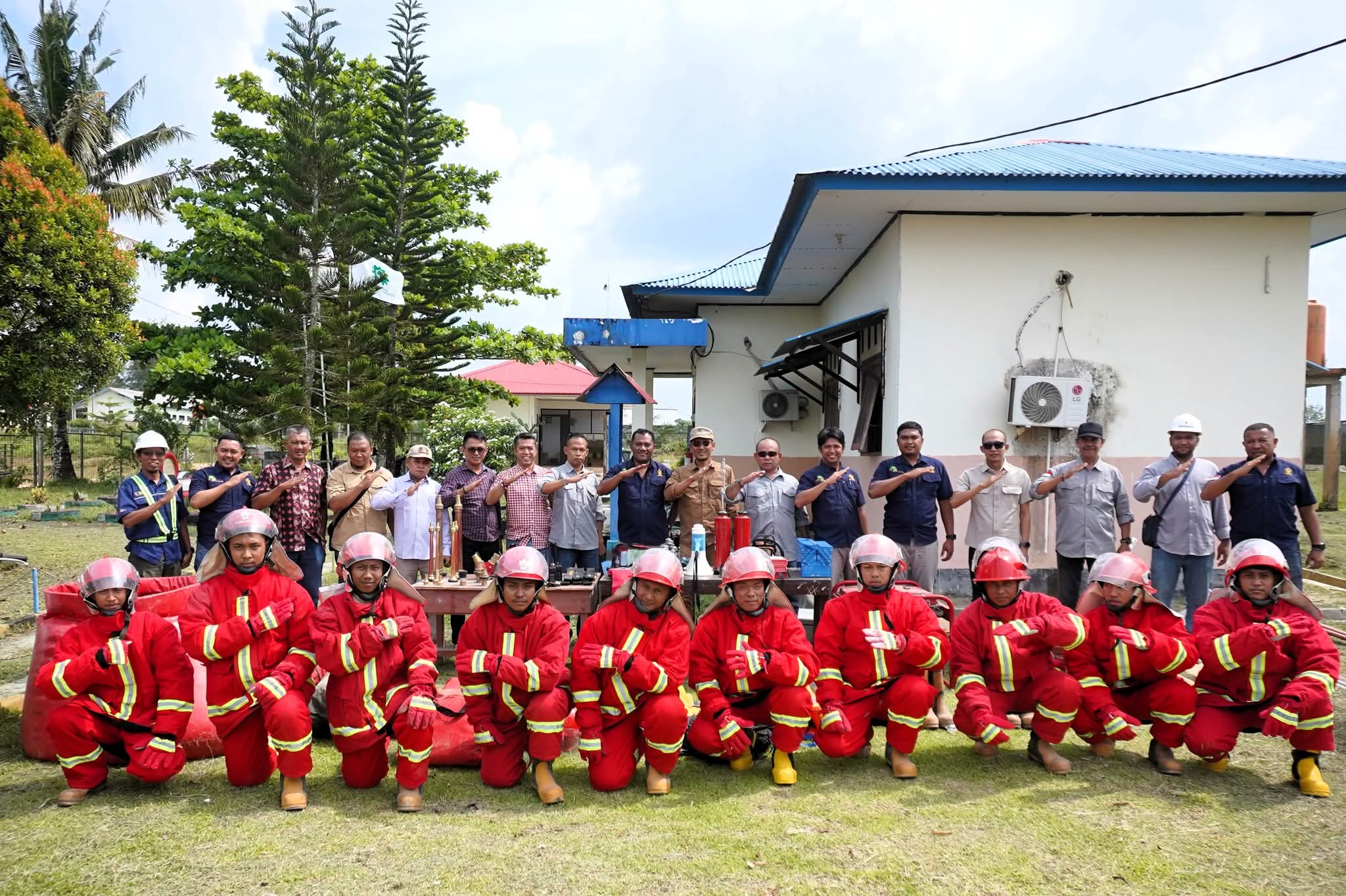 Sebagai penutup rangkaian kegiatan, rombongan DPRD Ketapang berfoto bersama pasukan tim pemadam kebakaran milik PT HHK. Momen ini menjadi simbol sinergi antara pemerintah daerah dan pihak perusahaan dalam menjaga kesiapsiagaan serta keamanan lingkungan perkebunan.