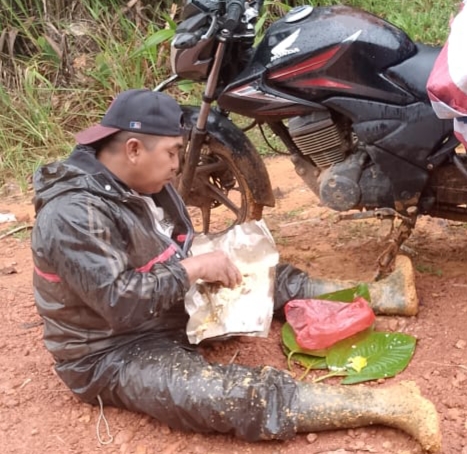 Wakil ketua pengurus cabang PC PGRI sungai laur ini menambahkan sudah 2 tahun 3 bulan ia pergi mengajar ke SMPN 06 tiap hari harus melalui tantangan jalan rusak.Pernah dirinya makan di jalan akibat kelelahan mendorong motornya.