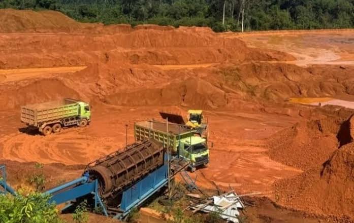 Di lokasi tambang, alat berat excavator juga terus mengeruk tanah bauksit untuk dicuci dan diangkut, tanpa menunjukkan tanda-tanda penghentian operasi.