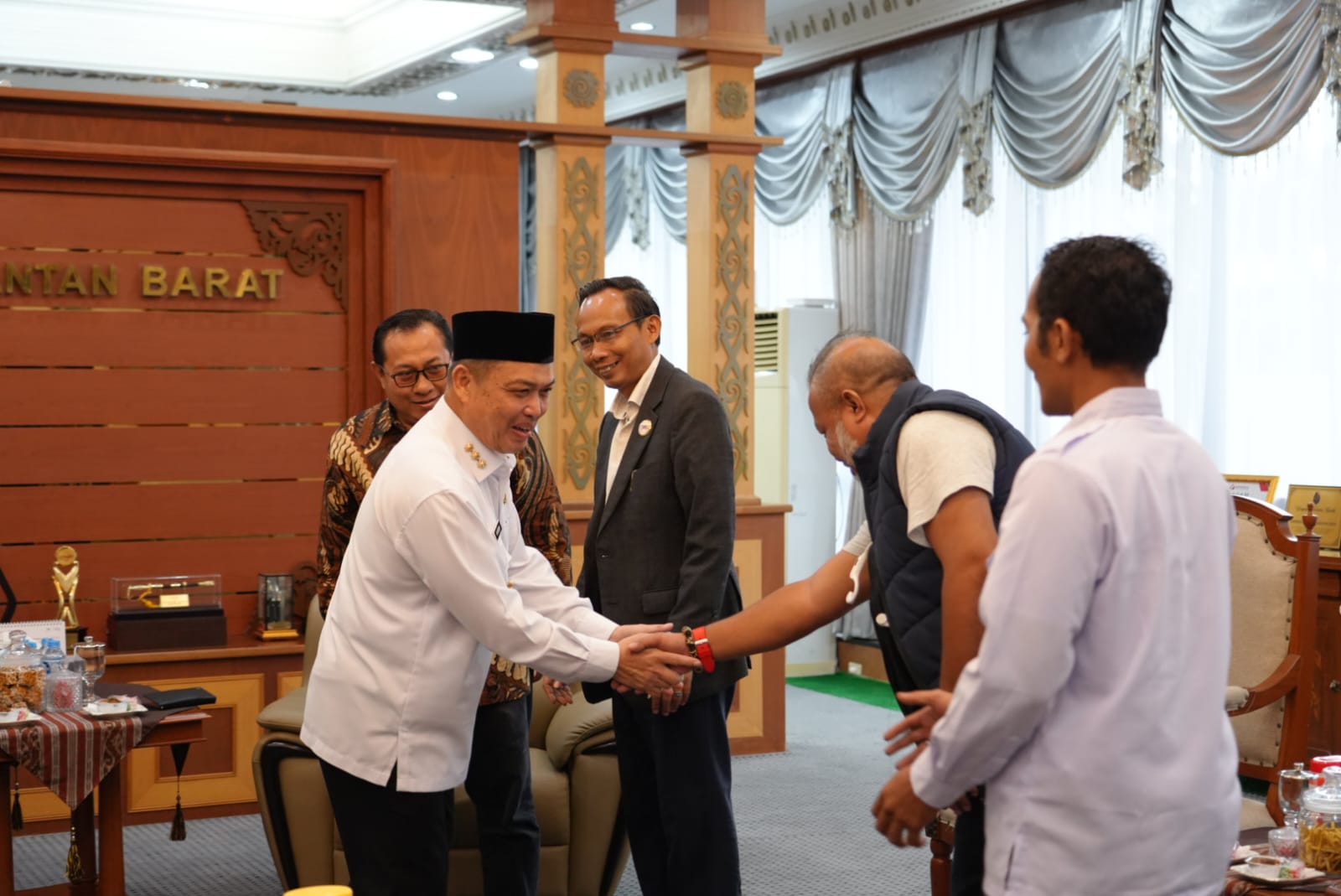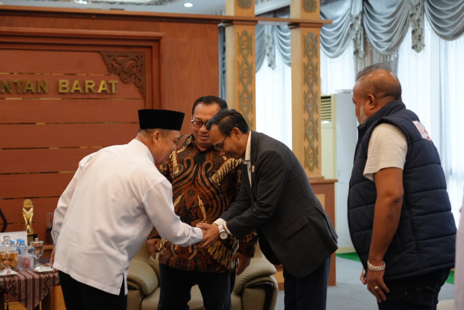 Tak menunggu lama, Gubernur Kalbar Ria Norsan langsung menyambut mereka dengan jabatan tangan hangat, penuh keakraban. Senyumnya melebar, seolah memberi isyarat bahwa pertemuan ini bukan sekadar kunjungan formal, tetapi silaturahmi yang sudah lama dinantikan.